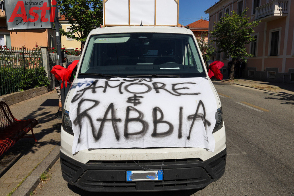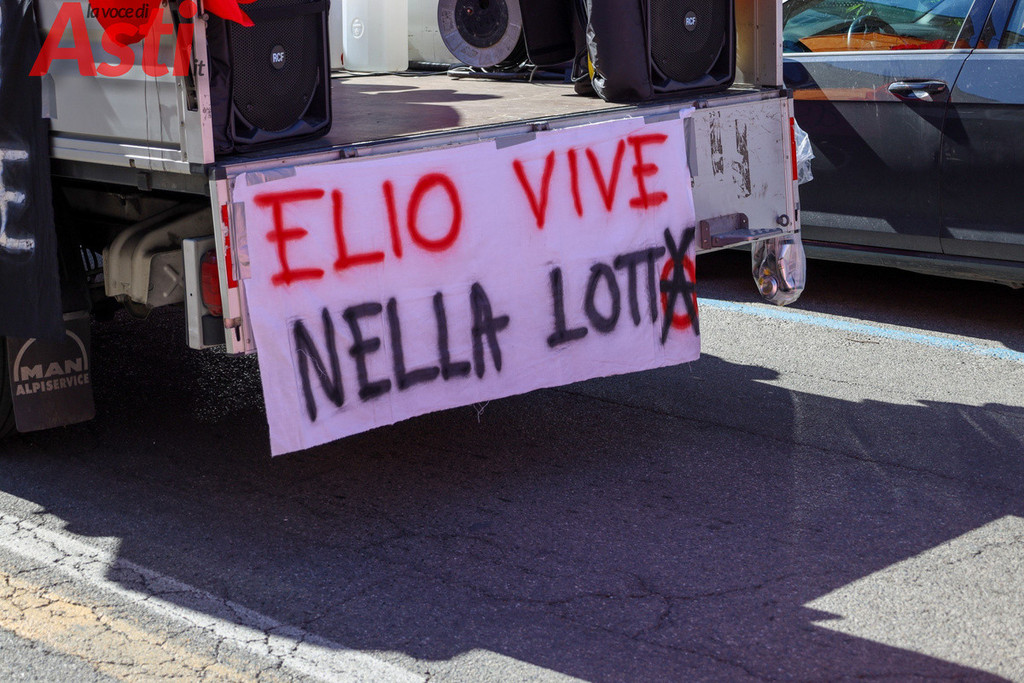 Tra i momenti più toccanti della giornata, lo striscione scritto a spray in rosso e nero su sfondo bianco che campeggiava sul carro di testa: "Elio vive nella lotta". Un omaggio sentito e collettivo alla memoria di Elio Morelli, militante anarchico astigiano scomparso improvvisamente il 20 settembre 2025 a soli 37 anni.