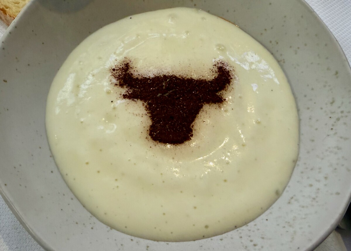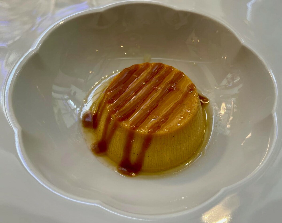 Si conclude con uno scatto verso l’alto: il latte in piedi e caramello al miso, in cui dolce, sapido e tostato si tengono davvero insieme.