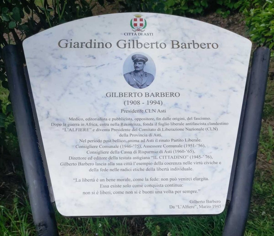 Al termine il vicesindaco di Asti, Stefania Morra, unitamente al deputato Marcello Coppo e a Paola Barbero, ha scoperto il restaurato cippo commemorativo di Gilberto Barbero e deposto davanti ad esso una corona d’alloro.