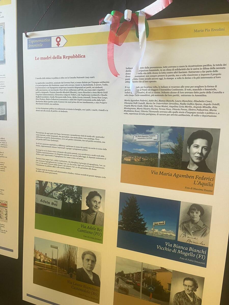 L’esposizione è stata fortemente voluta dalla dottoressa Martina Gado, dirigente scolastica, e dalla professoressa Silvia Tagliaferro, con il supporto della dottoressa Giovanna Cristina Gado, referente provinciale dell'associazione. L’obiettivo è far conoscere le ventuno donne che, per la prima volta, portarono nelle aule parlamentari i principi di dignità sociale, uguaglianza e democrazia paritaria. I loro nomi sono stati pronunciati con orgoglio durante la cerimonia: Adele Bei, Bianca Bianchi, Laura Bianchini, Elisabetta Conci, Maria De Unterrichter Jervolino, Filomena Delli Castelli, Maria Agamben Federici, Nadia Gallico Spano, Angela Gotelli, Angela Maria Guidi Cingolani, Leonilde Iotti, Teresa Mattei, Angelina Merlin, Angela Minella, Rita Montagnana Togliatti, Maria Nicotra Fiorini, Teresa Noce Longo, Ottavia Penna Buscemi, Elettra Pollastrini, Maria Maddalena Rossi e Vittoria Titomanlio.