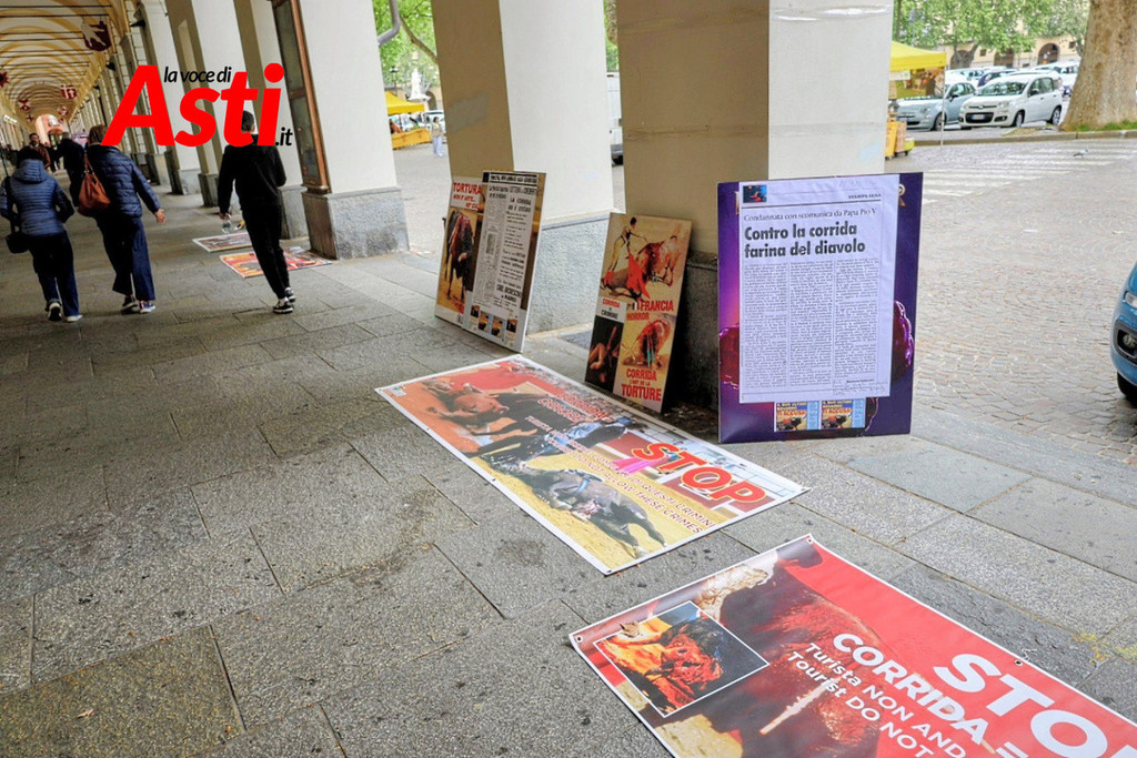 Sotto i portici Anfossi di piazza Alfieri, tra fotografie che non lasciano spazio all'immaginazione e documentari trasmessi anni fa anche dalla Rai, Asti ha ospitato oggi una mostra silenziosa e scomoda. L'ha allestita U.N.A. Asti – Uomo, Natura, Animali, con il sostegno di Animalisti Italiani, scegliendo una data tutt'altro che casuale: il 30 aprile, anniversario della nascita di San Pio V, il papa piemontese di Bosco Marengo che nel 1567 firmò la bolla De salute gregis Dominici, condannando le corride con la scomunica per toreri, organizzatori e spettatori di quello che definì uno spettacolo degno più dei demoni che degli uomini.