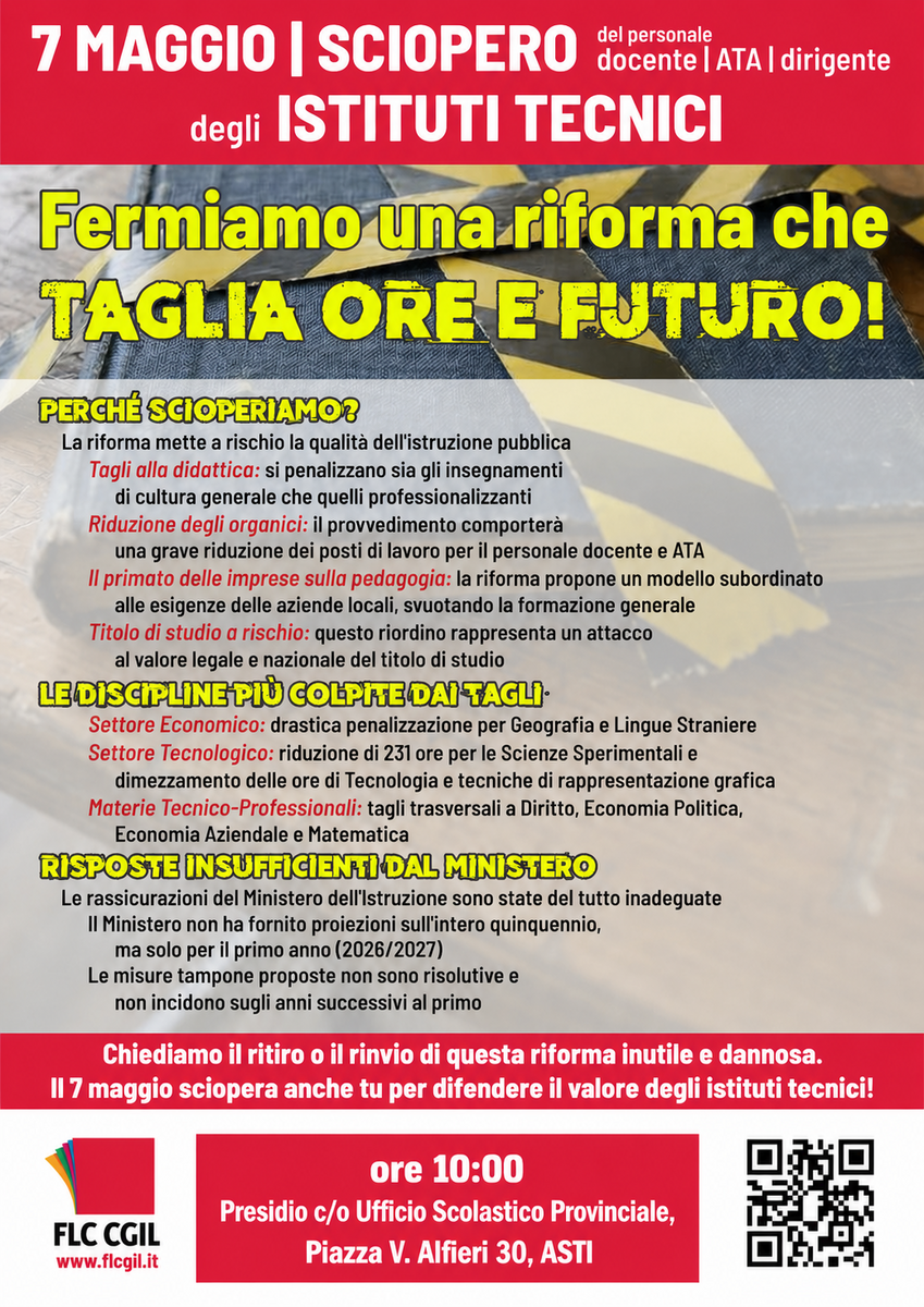 Il segretario provinciale della Flc Cgil di Asti, Mario Li Santi, ha riassunto i motivi del dissenso utilizzando una formula netta e inequivocabile: "Meno scuola, cultura e pensiero critico; meno posti di lavoro per i docenti; più addestramento al lavoro per gli studenti". Il segretario ha poi lanciato un appello allargato, invitando l'intera società civile del territorio a sostenere l'iniziativa. L'obiettivo, si legge nella nota, è quello di difendere la scuola pubblica "come presidio democratico e di unità nazionale", salvaguardando il valore della cultura per le nuove generazioni.
