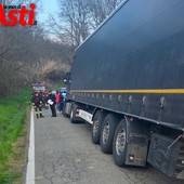 Bilico fuori strada a Vaglio Serra, traffico bloccato in Valdivaglio