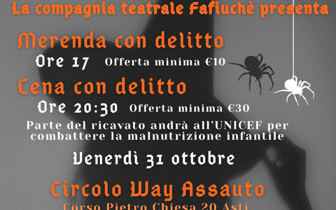 Asti, doppio appuntamento con l’UNICEF per Halloween: “Merenda e cena con delitto” per aiutare i bambini del mondo
