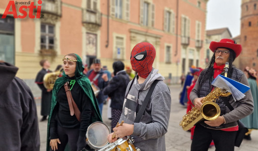 L'onda a colori del Carnevale travolge il cuore di Asti e rallegra la domenica [FOTO E VIDEO]