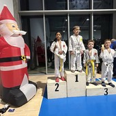 I giovani atleti festeggiano con genitori e allenatori, tra sorrisi e la simpatica apparizione di Babbo Natale