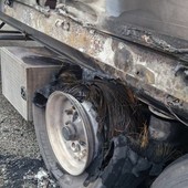 Attimi di paura a Castagnito: l'autista sgancia in tempo il rimorchio andato a fuoco, forse per un guasto ai freni